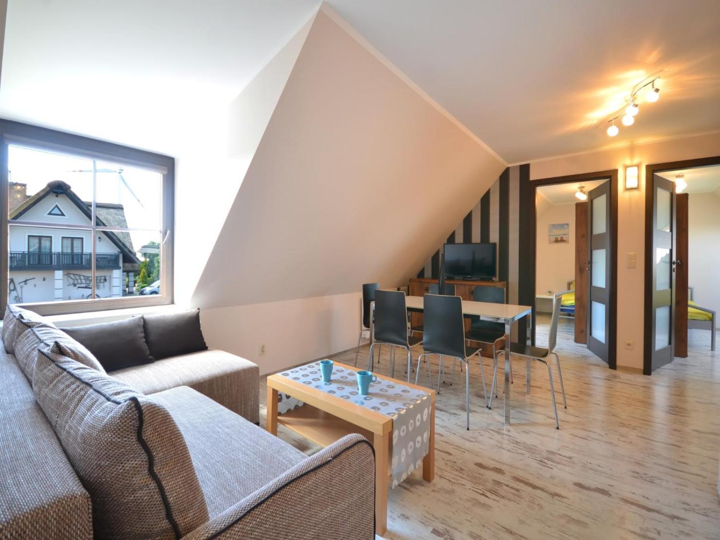 Dom wakacyjny. The holiday home features a dining area, a barbecue, as well as a private bathroom featuring a shower. The holiday homes kitchenette, which features a refrigerator, is available for cooking and storing food. The holiday home provides a TV with cable channels, a washing machine, a tea and coffee maker, a seating area as well as garden views. The unit offers 3 beds. Dom wakacyjny - 4 osobowy. Powierzchnia pokoju ok.: 25 mkw. ;