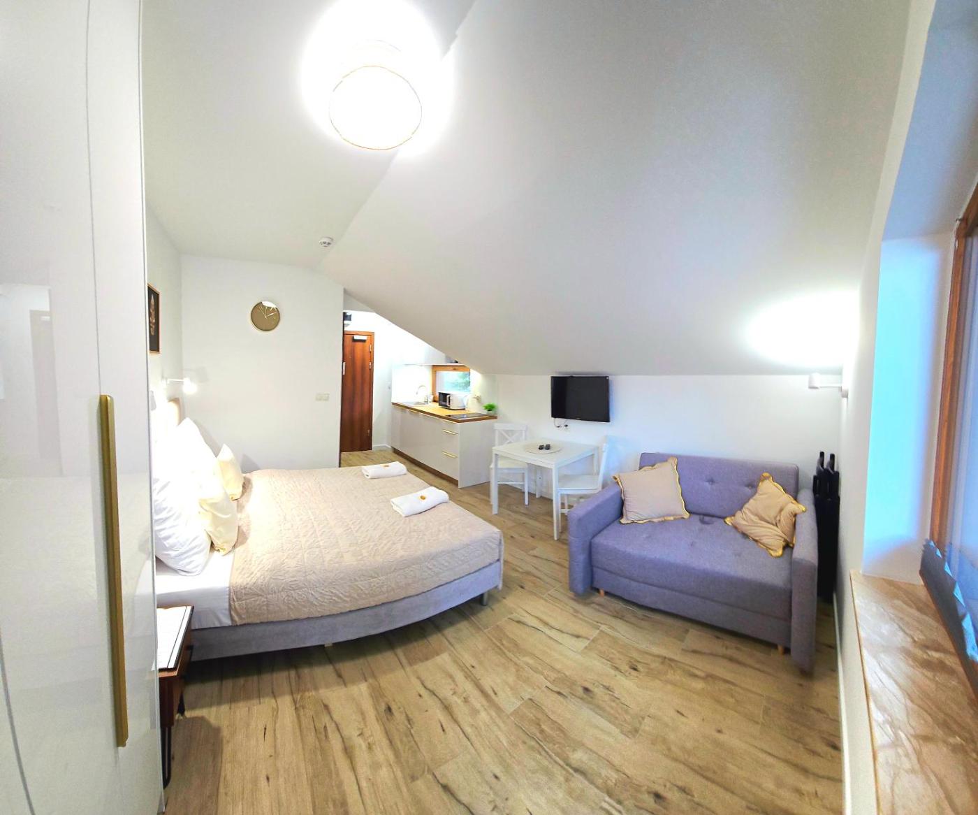Apartament typu studio. This apartment comes with 1 bedroom, a kitchenette and 1 bathroom with a shower and a hairdryer. Meals can be prepared in the well-fitted kitchenette, which features a stovetop, a refrigerator, a dishwasher and kitchenware. Boasting a balcony with garden views, this apartment also features a tea and coffee maker and a flat-screen TV. The unit has 3 beds. Apartament - 4 osobowy. Powierzchnia pokoju ok.: 21 mkw. ;